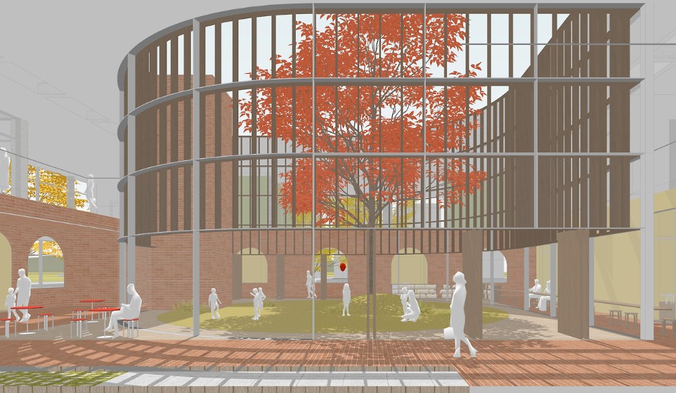 ๊ฑด์ถ๊ฐ๋ โ์์์ ํ๊ฒฝ(Autogenous landscape)๐พโ์ ์ฃผ์ ๋ก ๋ด๋ถ ์ค์ ์ ์ค์ฌ์ผ๋ก ๊ตฌ์ฑ๋ ๊ฑด์ถ๋ฌผ์ ์ ์ํ๋๋ฐ์. ํนํ, ๊ฒฝ์์ง ํ๊ฒฝ์ ๋ด๋ถ๋ก ๋์ด๋ค์ด๋ฉฐ ์ฐ์๋๋ ํ๊ฒฝ์ ๋ง๋ค๊ณ , ๊ณต๊ณต์์ค๋ก์ ์ ๊ทผ์ฑ์ ๋์ด๊ธฐ ์ํด '๋์จํ ๊ฒฝ๊ณ'๋ฅผ ๋ง๋ค๊ฒ ๋ค๋ ๊ฒ์ด ํต์ฌ์ด์์. ๋ด๋ถ์ ์ค์ ์ค์ ๋ฟ๋ง ์๋๋ผ, ๋ง๋นยท์ด๋ฆฐ ํ